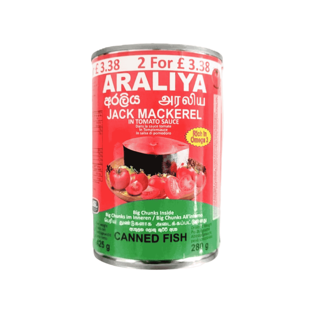 Order your Araliya Jack Mackerel in Tomato Sauce 425g today from BuyLankan and enjoy the authentic taste of Sri Lanka, delivered right to your doorstep in the UK.