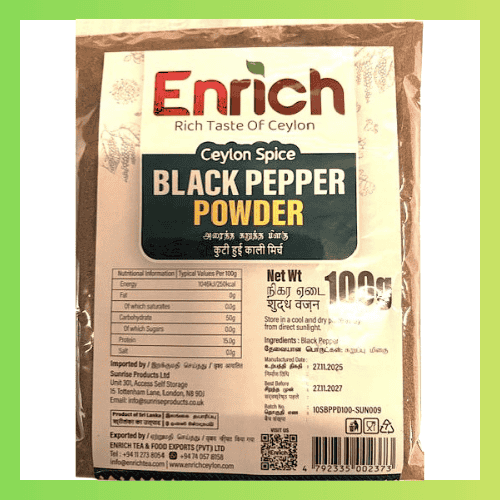At BuyLankan, we bring authentic Sri Lankan food products to customers across the United Kingdom. Our goal is simple. We want to make traditional ingredients easy to find in the UK. Therefore, you can order Enrich Black Pepper Powder 100g from BuyLankan with confidence.