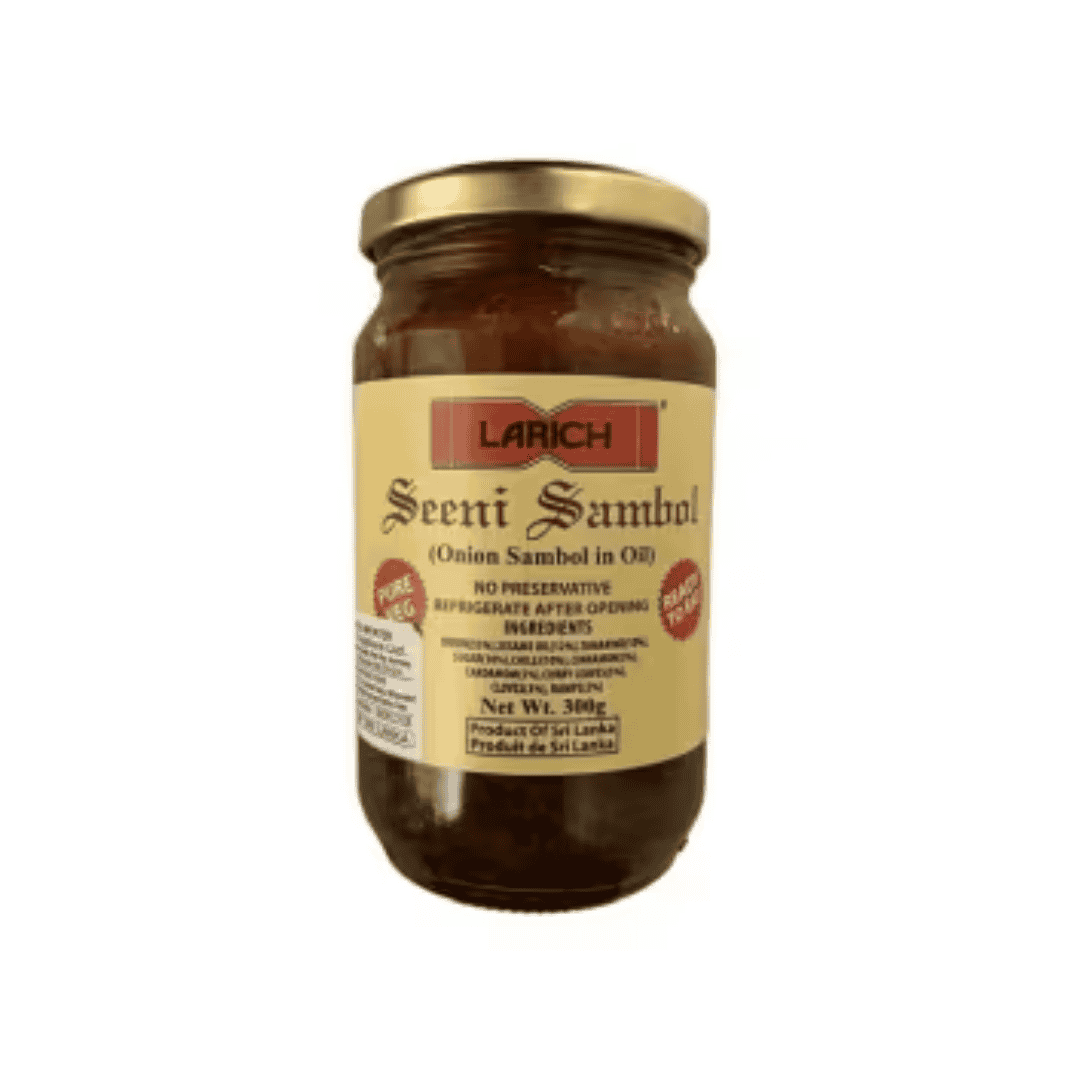 Whether you are preparing a casual lunch or hosting a dinner party, Larich Seeni Sambol adds a vibrant, delicious touch to every meal. It is an essential pantry item for anyone who loves bold, authentic flavours and wants a quick, ready-to-serve option.